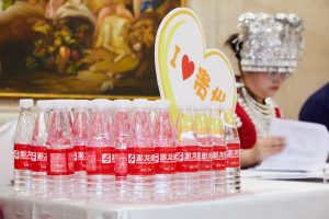 晚会现场,澎龙电池的品牌视觉体系与中秋氛围巧妙融合,形成沉浸式品牌体验。舞台主背景、签到区背板等核心视觉点位均呈现“澎龙电池”主赞助商标识,强化品牌曝光。餐桌上定制水饮、物料包装等细节处融入企业VI元素,于细微处传递品牌温度。